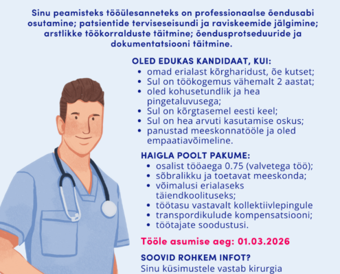 Madis Perli2026-02-20 15:00:492026-02-20 14:22:48Kirurgia osakonda on oodatud tööle ÕDEBroneeri vastuvõtuaeg