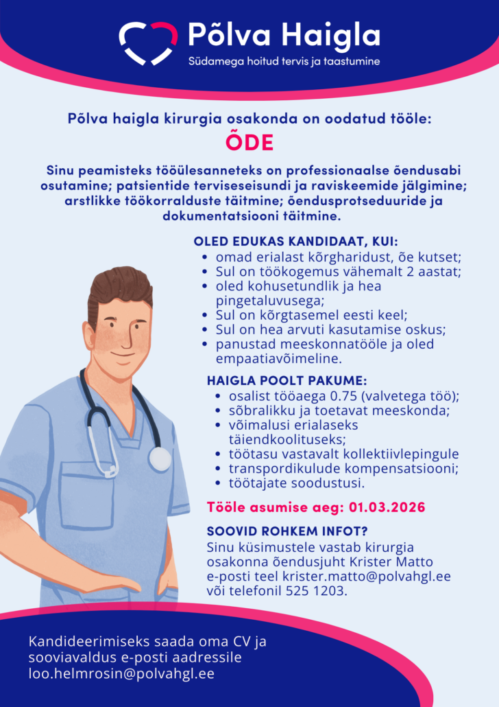 Põlva haigla kirurgia osakonda on oodatud tööle ÕDE