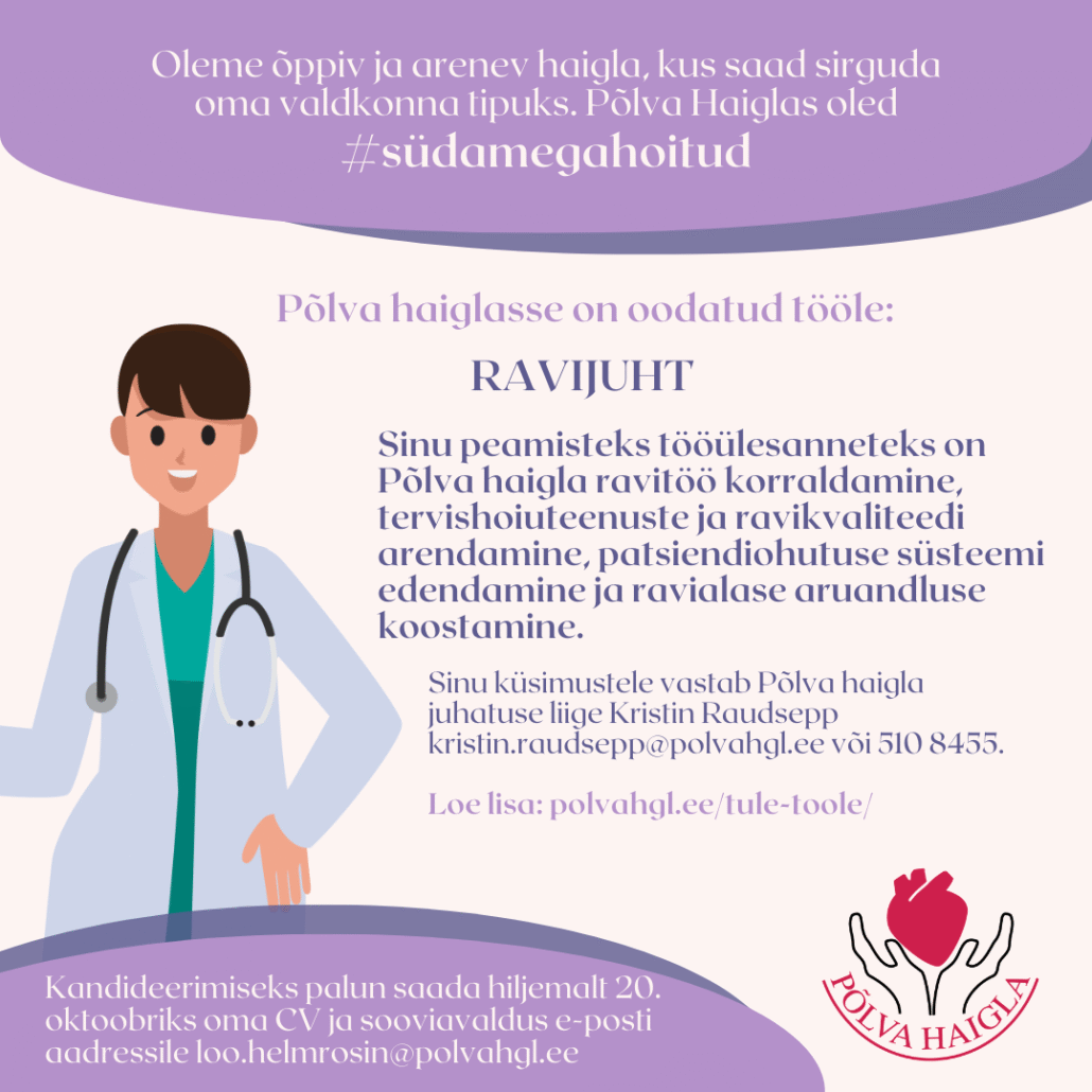 Põlva Haiglasse on oodatud tööle RAVIJUHT