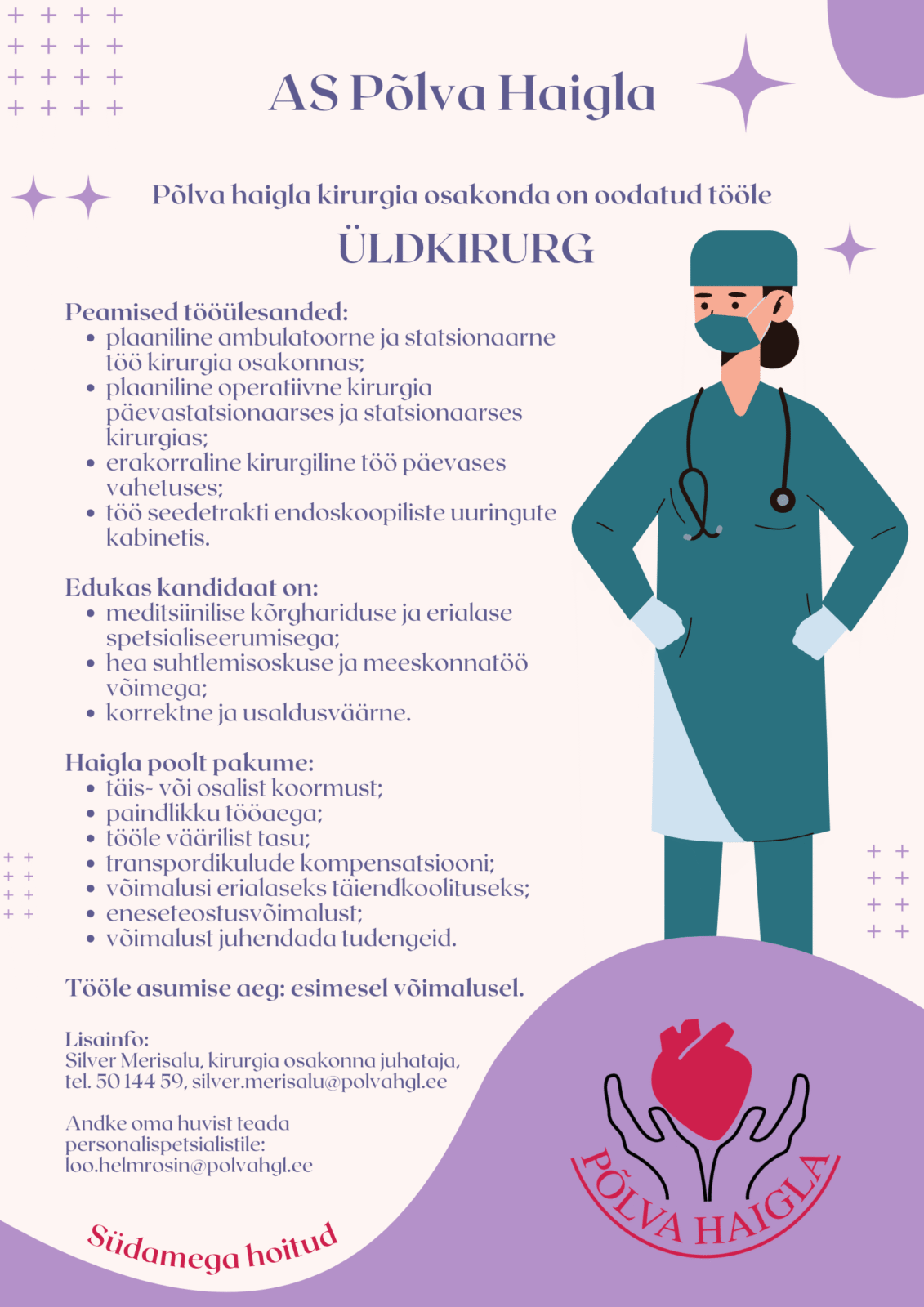 Põlva haigla kirurgia osakonda on oodatud tööle ÜLDKIRURG